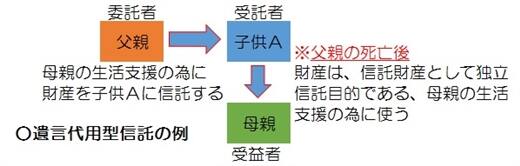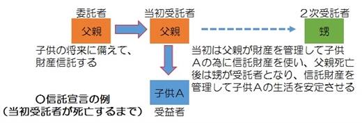 例えば、信託を設定されるご本人がお元気なうちは、ご自身で要保護者の方のご面倒を看られて、ご自身の亡きあとは信頼できる方にその財産を託し、引き続き要保護者の方の為に財産を使用していただく、というものです。